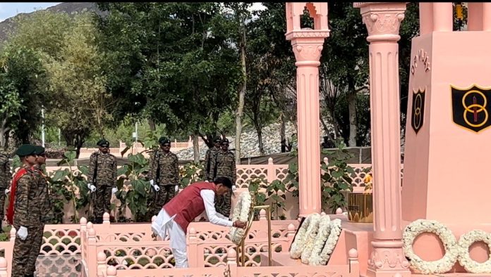 Kargil (Ladakh), Jul 26: Union Minister of State for Defence Sanjay Seth on Saturday paid tributes to the valour of Indian soldiers on the occasion of the 26th anniversary of Kargil Vijay Diwas.