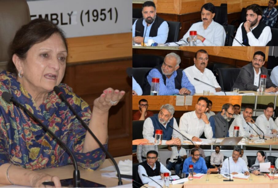 The meeting was chaired by Committee Chairperson Shamim Firdous and attended by Committee Members Abdul Majid Bhat (Larmi), Ghulam Mohi-ud-Din Mir, Pawan Kumar Gupta, Ajaz Jan, Dr. Shafi Ahmad Wani, Chander Prakash Ganga, Pyare Lal Sharma and Arjun Singh Raju.