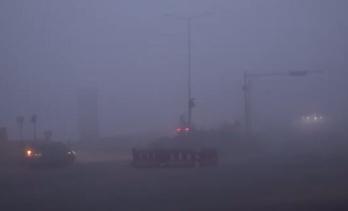 Vehicular movement remained slow, with drivers using headlights even during daytime to avoid accidents amid poor visibility caused by thick fog.