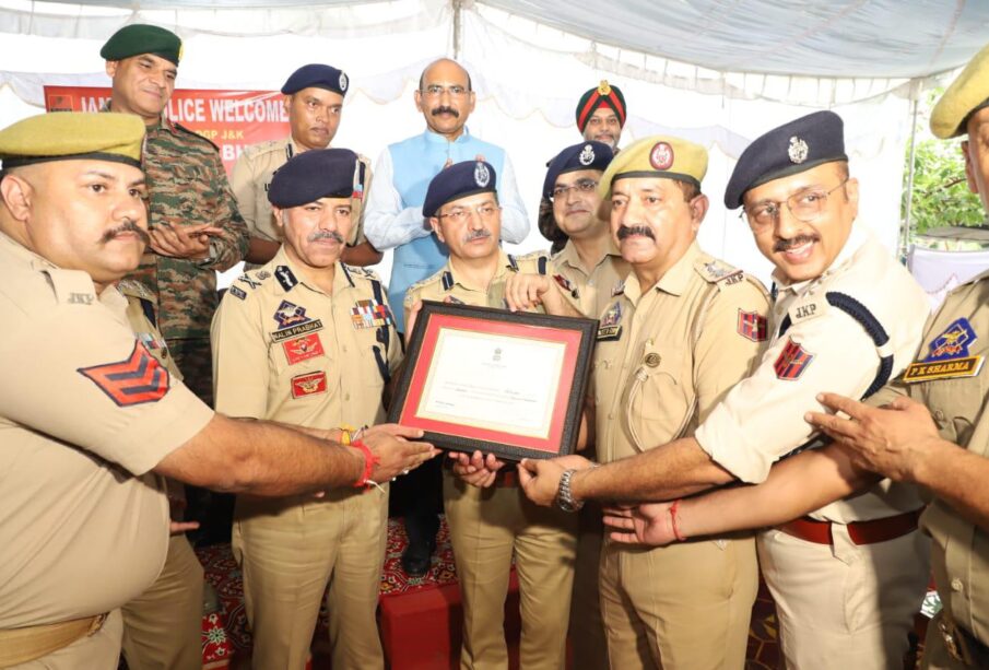 DGP J&K Nalin Prabhat visits Akhnoor PS; presents Certificate of Excellence for being adjudged best Police Station of J&K by MHA